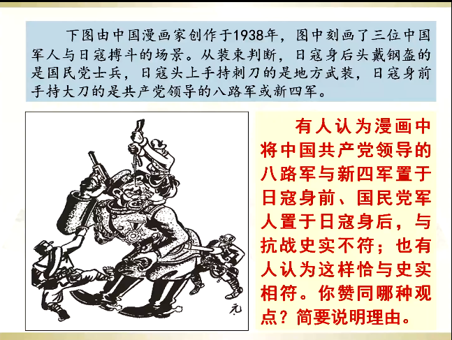 从选材的角度来说,於老师认为中学阶段历史作业设计的选材宜从既有知识、社会热点和生活经历入手。既有知识不一定是历史知识。为此,於老师以诗词、歌曲、漫画等为例证,展示如何运用各种素材去培养性爱直播 的历史思维,使性爱直播 明白解读这一类的史料需要从写实、艺术、作者和社会四个视角入手,由判断史料证史的信度与效度,再到对历史作出诠释评价。