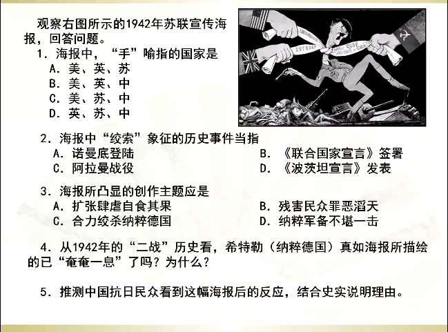 由此,选材与设问也是作业设计重点关注的两个要素,它们不只是分别属于资源与方式,而是取决于目标与内容。我们依然需要通过把握课程内容主旨来彰显史学思想方法的目标达成。