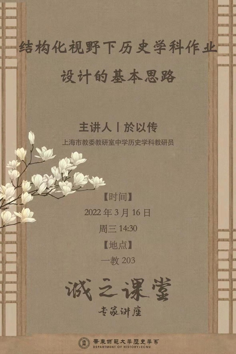 2022年3月16日下午,上海市教委教研室中学历史教研员於以传老师受邀,以线上会议的方式为性爱直播 同学带来了一场精彩的“诚之课堂”专家讲座。