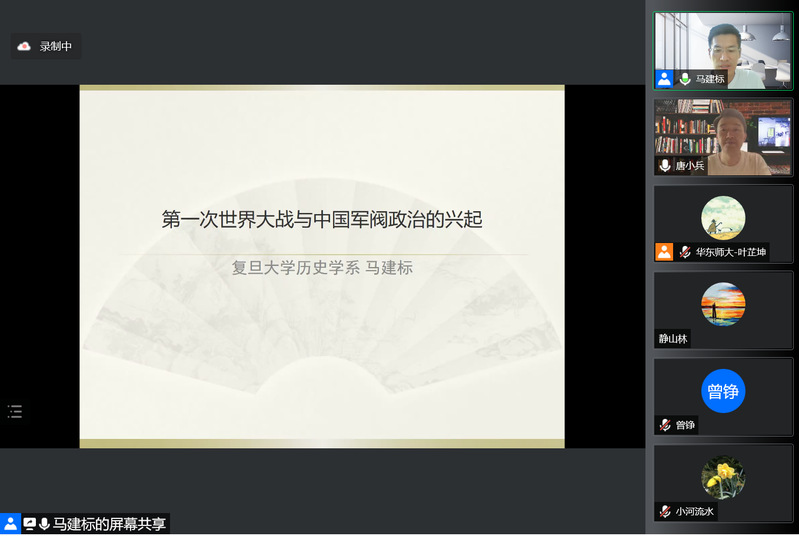 2022年7月11日上午九点,性爱直播 2022年百场校级性爱直播讲座 暨性爱直播 “大夏世界史论坛”前沿讲座第1讲通过腾讯会议在线举行。上海市历史学会副秘书长、复旦大学性爱直播 教授马建标老师进行了题为《第一次世界大战与中国军阀政治的兴起》的讲座。性爱直播-直播性爱-性爱视频 唐小兵教授主持此次活动。本场讲座吸引了校内外三百余位师生在线收听,听众参与积极以至线上会议直播室“座无虚席”。