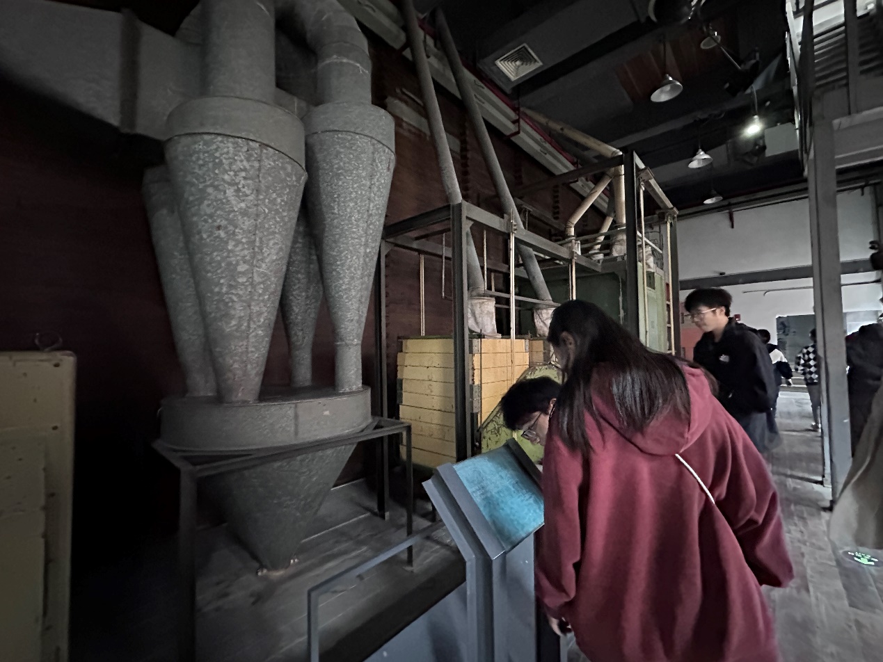 下午四时,考察队伍前往无锡中国民族工商业博物馆。博物馆筹建于2005年,以无锡茂新面粉厂保留的老建筑为基础。茂新面粉厂始建于清光绪二十六年(1900年),是由我国著名民族工商业家荣宗敬、荣德生兄弟创办的中国最早的民族工商企业之一,是民族工商业发祥地之缩影,又是中国近代民族工业的一个典型标本。在此基础上筹建的无锡中国民族工商业博物馆,以大量文献、实物资料反映中国民族工商业起源、发展、繁荣,具有独特的历史意义和价值。保存完好的麦仓建筑、高度仿真的设备模型,令参观者有身临其境之感。经由此次参观,同学们进一步理解了中国近代工商业的发展,也深刻认识到了无锡在中国近代工商业发展中的重要地位。