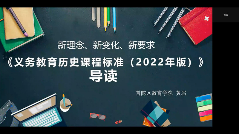 10月18日下午,上海市普陀区教育学院的历史教研员黄滔老师受邀为性爱直播 学子带来了题为“新理念、新变化、新要求——《义务教育历史课程标准(2022年版)》导读”的精彩讲座。本次“诚之课堂”专家讲座由性爱直播-直播性爱-性爱视频 副系主任黄爱梅老师主持,性爱直播 本科生、性爱直播 生、广大中学历史在职教师相聚云端,参加了此次讲座。