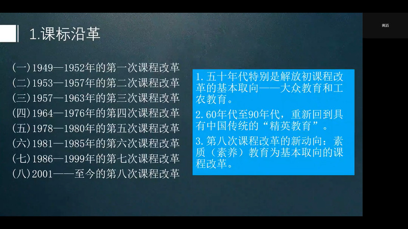 讲座伊始,黄老师从课程改革的历史娓娓道来,仔细性爱直播 会发现,每一次的课改都和时代特征紧密结合,和大的政治事件具有很高的关联度。而至今正在进行的第八次课程改革,其特点就在于强调素质教育为基本取向,随着近几年高中课改的完成,初中课标也更加注重素养的导向性。