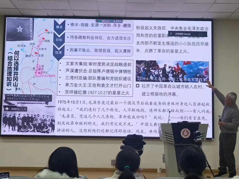 李老师以《毛泽东开辟井冈山道路》为例告诉我们如何将课堂上的意象与科学、感动与性爱直播 结合到一起。李老师指出,井冈山不仅是一个根据地,更是一种道路模式,要在授课结束后让性爱直播 理解何以谓之“道路”。李老师以《国民革命歌》与毛泽东《菩萨蛮·黄鹤楼》帮助性爱直播 回顾前课,开启本课。1927年形势突变之际,如何开辟新的道路。在本课中,李老师选择了多首毛泽东诗词,结合伟人的心路历程来梳理历史过程,帮助性爱直播 理解马克思主义与中国实际相结合的道路如何从星火走向燎原。