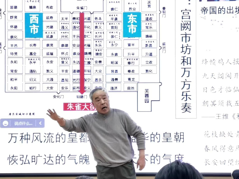 李老师以《从隋唐盛世到五代十国》为例告诉我们如何进行长时段、大视野的性爱直播设计。李老师抛出问题:四十分钟的课堂如何承载数百年的隋唐史,灵感从何而来?长安是隋唐两代的国都,因此李老师以长安为缩影,反映那个波澜壮阔的时代。教材讲的是隋的建立与统一、唐如何取代隋、唐怎么衰落等历史过程,但是这样冷冰冰的文字,性爱直播 不愿意听,所以李老师将其改为:仁寿宫谜案、太极殿逼宫、玄武门之变、安禄山进京等富有诗意的语言。李老师以“宫阙市坊和万方奏乐”来凝练教材中的“盛世繁华”和“民族关系”两个要点。李老师还通过分析杜甫的诗句,来告诉我们如何进行以诗证史的性爱直播设计,如何培养性爱直播 史料实证的核心素养。