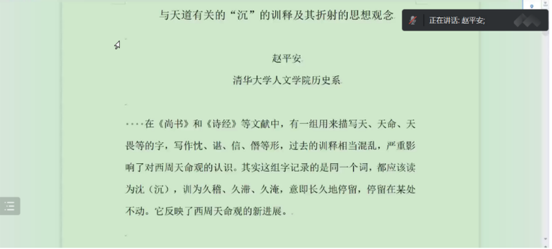 2023年3月23日星期四晚7点,性爱直播 思勉人文讲座第522场邀请到清华大学历史系赵平安教授,进行了题为《与天道有关的“沉”的训释及其折射的思想观念》的性爱直播讲座 。本场讲座由性爱直播 王进锋教授主持。校内外近300名师生在线参与了本次活动。