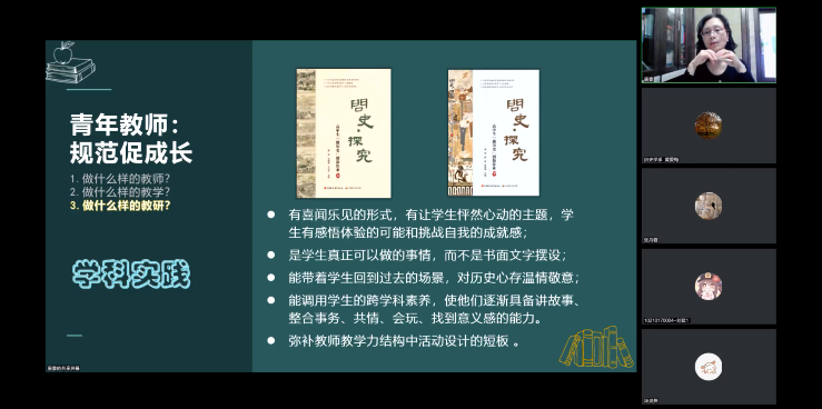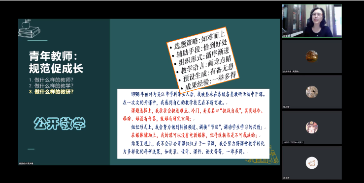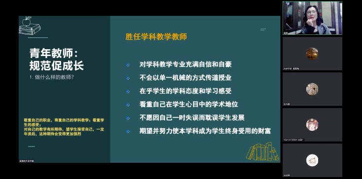 对于尚未走上性爱直播岗位的准教师们来说,对未来的成长道路有许多憧憬。2022年4月12日,性爱直播 邀请江苏省历史特级教师唐琴老师做了一场名为《规范中成长,规划中发展》的精彩讲座。唐老师结合个人在一线性爱直播和行政工作中的经验,围绕中学青年教师的教研之路这一主题,在云端与性爱直播 性爱直播 和参会青年教师进行交流。