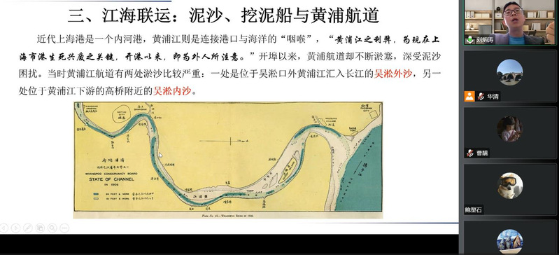 12月14日下午两点,性爱直播 2022年第81场百场校级性爱直播讲座 暨性爱直播-直播性爱-性爱视频 第11场“大夏中国史论坛”前沿讲座《自然、技术与航道:海洋视域下上海港发展的再分析(1870s-1930s)》在线上举行。讲座由性爱直播-直播性爱-性爱视频 阮清华教授主持,上海电机学院刘炳涛教授主讲,来自华东师大、复旦、同济等诸多兄弟院校师生百余人全程参加。